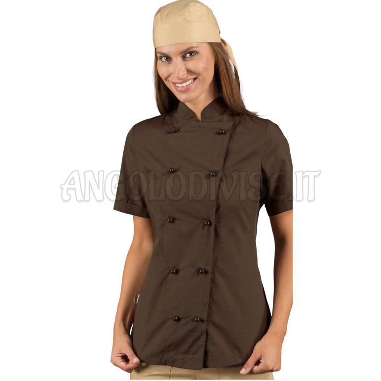 ISACCO GIACCA LADY EXTRALIGHT M/M CACAO 65% POLYESTER 35% COTTON Giacca Lady Chef bottoni antipanico. Ottima divisa per donna da chef in cucina, ristorante o catering. Taschino alla manica e allacciatura con bottoni antipanico. modello classico. Aiuto cuoco, Cuoco, Lavapiatti, Pizzaiolo