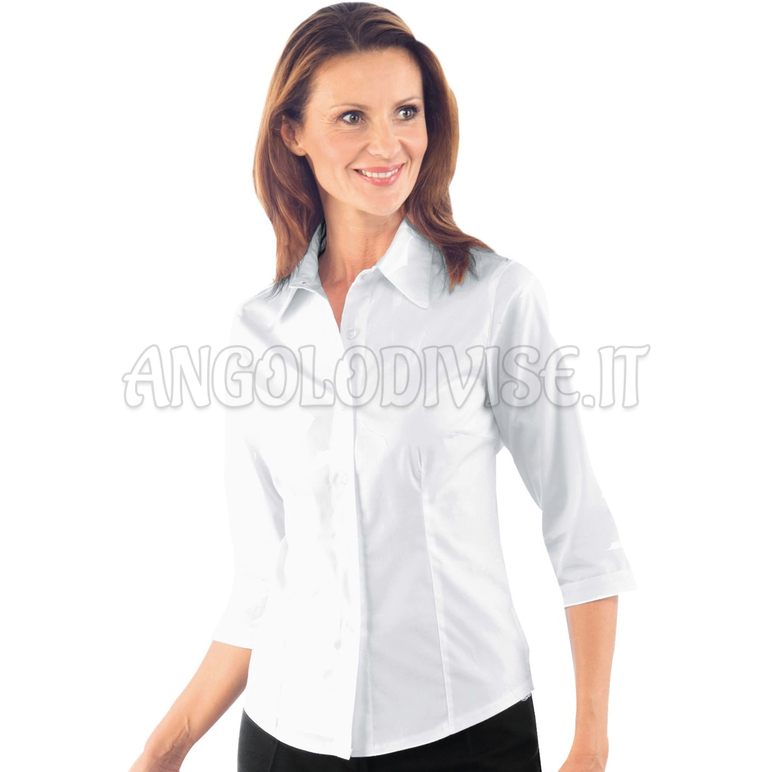 ISACCO CAMICETTA TENERIFE STRETCH MAN.3/4 BIANCO 97% COTTON 3% SPANDEX è una camicia da donna. Adatta per il settore alberghiero, ristorazione, da sala e divisa da lavoro per bar, pub, ristoranti, alimentari. Con bottoni a vista, modello sciancrato e stretch. Barista, Cameriere, Gelataio, Hostes, Impiegato ufficio, Pilota, Promoter, Receptionist, Sommelier, Stewart
