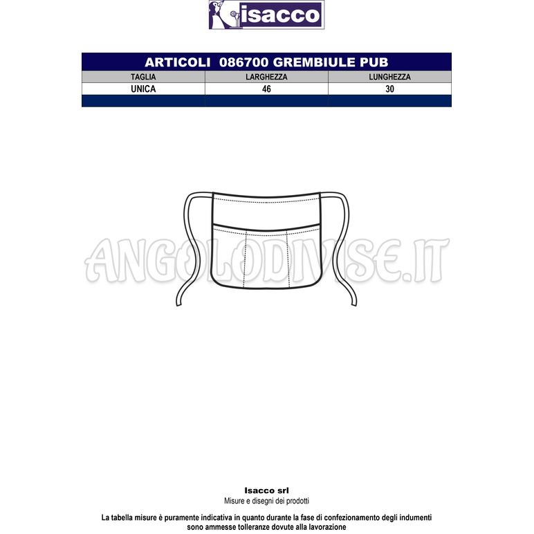ISACCO PUB VERDONE 100 % POLYESTER con doppia tasca. Ideale per settore alberghiero e parannanza per ristorazione per cameriere (sala). Divisa da lavoro per bar, pub, ristoranti, alimentari e catering. Con lacci lunghi 90 cm in tessuto. Professione: Barista, Gelataio.